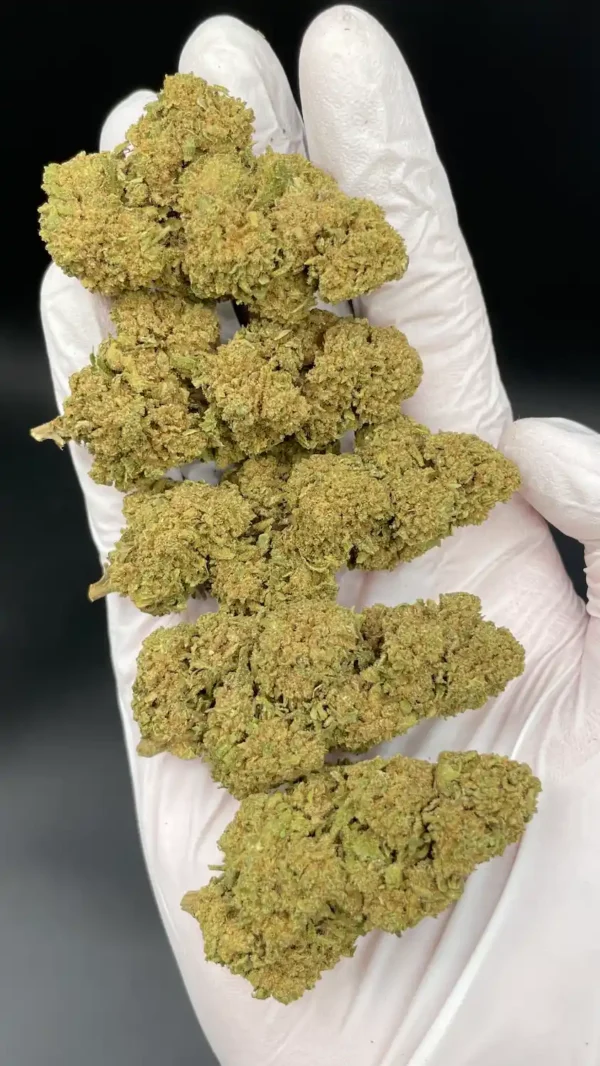 I fiori sono verde vivo, molto resinosi e compatti. Grazie alla giusta concia a regime di umidità controllata sono stati esaltati i colori e consistenza croccante. Il folto manto di tricomi è arricchito dai riflessi arancio e senape dei pistilli. La rifinitura in fase di pulizia viene effettuata a mano ed ogni cima viene selezionata con cura.